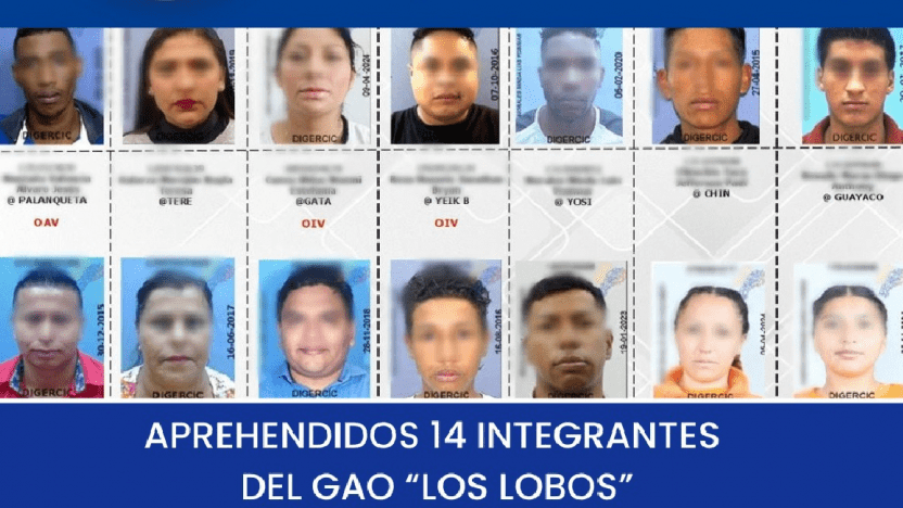 En un golpe contra la delincuencia organizada, la Policía y la Fiscalía capturaron a 14 sospechosos, incluyendo cabecillas de Los Lobos, vinculados a la crisis carcelaria y el caos de inseguridad que sacudió Ecuador en enero de 2024.