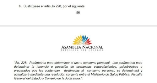 Ecuador ha aprobado recientemente la Ley de Solidaridad Nacional, que reintroduce el instrumento legal conocido como «parámetros referenciales» para combatir el narcotráfico, con el objetivo de ayudar a jueces y fiscales a diferenciar entre consumo personal y microtráfico.