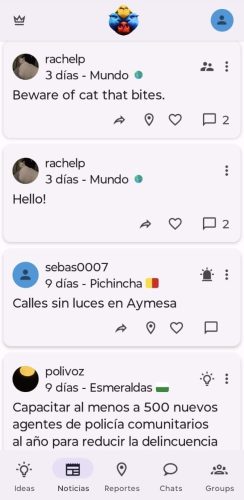 Además de ser un foro para la generación de ideas constructivas, Polivoz es un vigilante comunitario en tiempo real. Los usuarios pueden reportar incidentes críticos como accidentes, acoso, actividad sospechosa, disturbios, tráfico de drogas, estafas, incendios y quejas de todo tipo. Estos reportes se visualizan en un innovador mapa de calor interactivo, alertando a todos los usuarios sobre peligros o puntos de interés en su entorno, una función vital para la seguridad y la conciencia comunitaria.