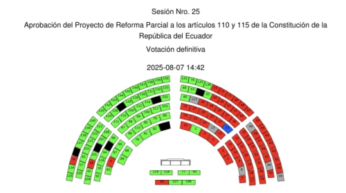 Con 81 votos a favor, el Pleno de la Asamblea Nacional de Ecuador aprobó este miércoles una reforma constitucional que eliminará el financiamiento público a partidos y movimientos políticos, una de las propuestas clave del gobierno de Daniel Noboa para la próxima consulta popular.