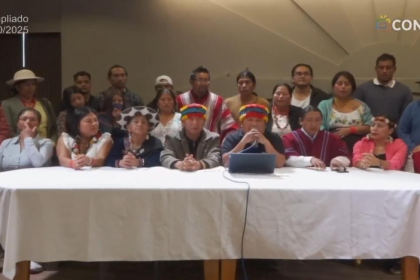 En el undécimo día del paro nacional convocado contra la eliminación del subsidio al diésel, la Confederación de Nacionalidades Indígenas del Ecuador (Conaie) se reunió este 2 de octubre de 2025 en Qu...